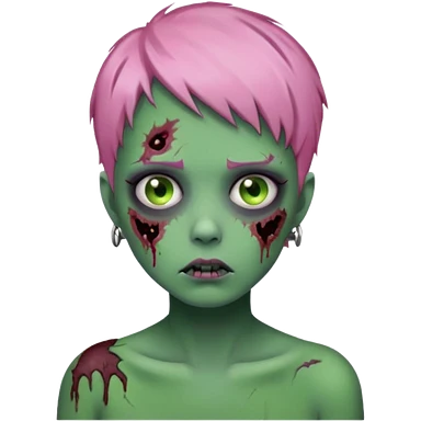 zoombie girl pink short hair, green skin emoji