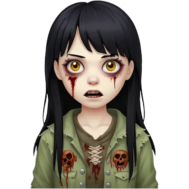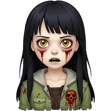 Faça uma mulher zumbi de franja cabelo longo preto 🧟♀️ emoji