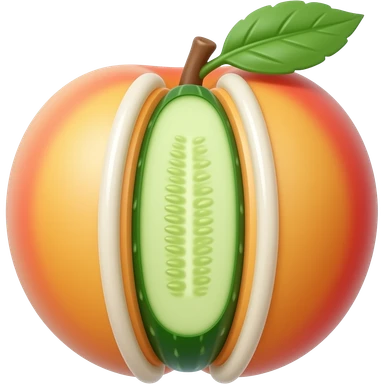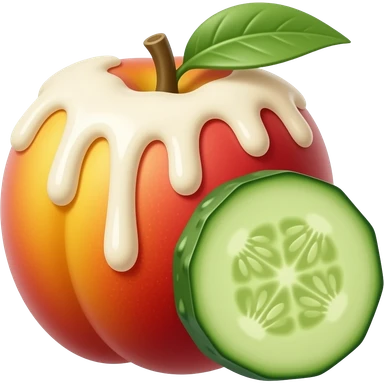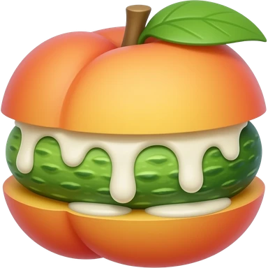 Peach with a cucumber in between with white sauce emoji