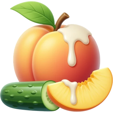Peach with a cucumber in between vertically with white sauce emoji