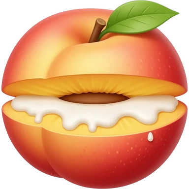 Whole Peach with cream dripping over the middle split emoji