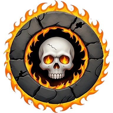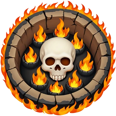 A circular hole (looking top down) with fire and skulls inside, in a dark and gritty style like your bleeding skull art emoji