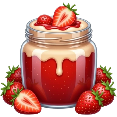 cream with strawberry in a cup with chocolate syrup topping emoji