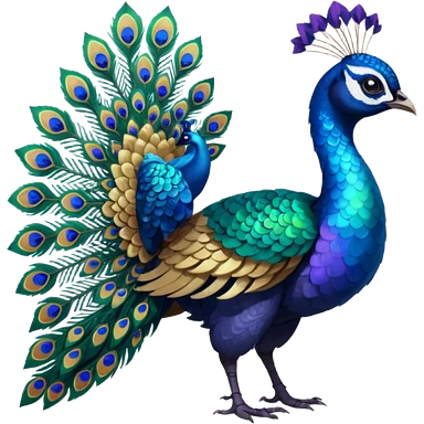 Peacock-colored beautiful handsome gorgeous aesthetic colorful vibrant Vernid-Trico-species-Fakemon-creature by LiLaiRa, 4 legs, 1 tail, random markings, (full body) emoji