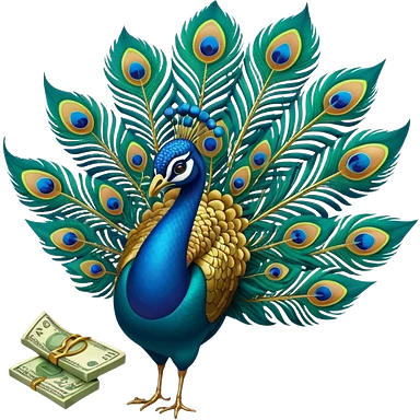 Peacock feather and money emoji | AI Emoji Generator