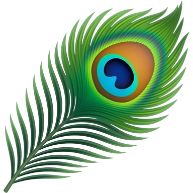 A small emoji Here's a custom-generated image of a majestic peacock feather inspired by Krishna's divine adornment: the eye-like tip in shimmering blues and greens, elegant curve, and glowing aura on a transparent background. You can right-click and save it, or copy-paste into apps like instagram emoji