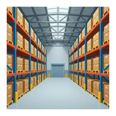 apple style emoji of a warehouse with storage shelves, alternate version, representing Lagerplatz (storage location) emoji