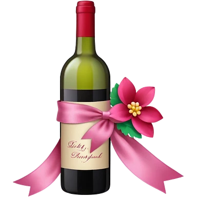 a ribbon decoration and flower decoration on a wine bottle emoji