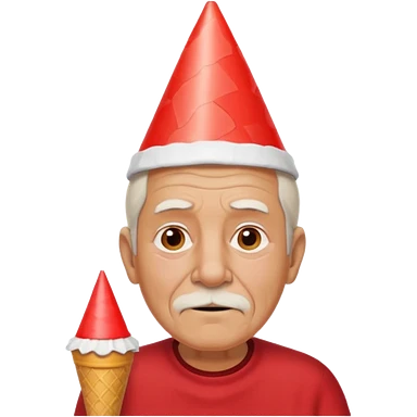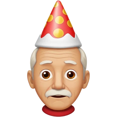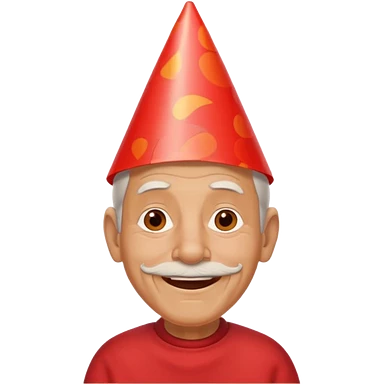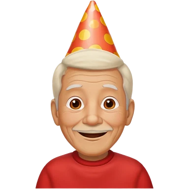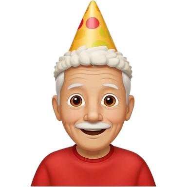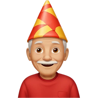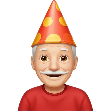 old man with warming smile, red shirt and birthday cone on his head emoji