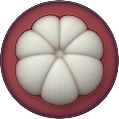 whole mangosteen with thick deep purple rind and green segmented calyx on top, next to a halved fruit revealing glossy white segmented flesh inside, soft juicy interior, firm outer shell, no leaves plate or extras, apple emoji style, soft lighting, subtle shadows, transparent background, emoji scale emoji