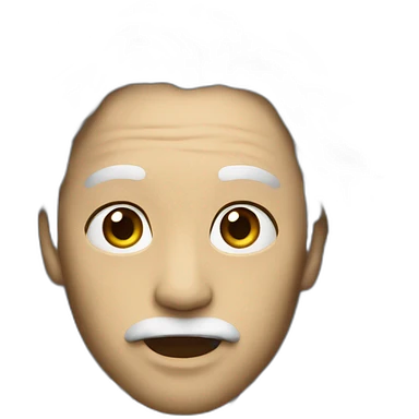 Hercule Poirot. Tête ronde. moustache peignée. Crâne chauve. Yeux marrons. emoji