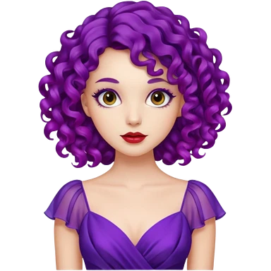 Fashion Model with Purple Curls, red dress emoji
