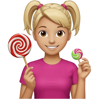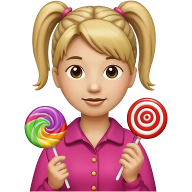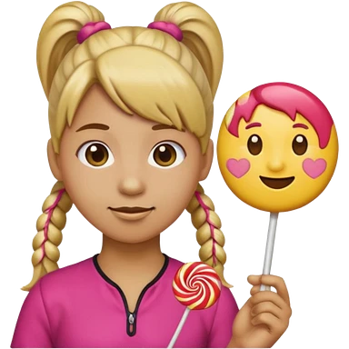 Using this emoji 🥹 make me one with ponytail hair holding a lollipop in each hand using the round emoji not a person emoji