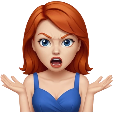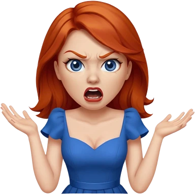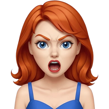 mujer pelirroja con los ojos y los labios maquillados enojada gritando con vestido azul emoji