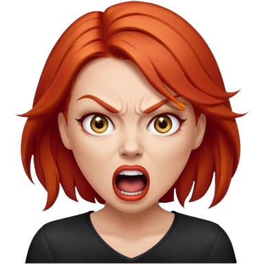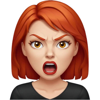 mujer pelirroja con los ojos y los labios maquillados enojada gritando emoji