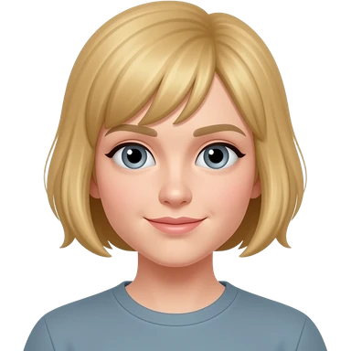 Pelo: Rubio, rizado y con mucho volumen, estilo media melena (altura de los hombros). Piel: Tono claro. Ropa: Camiseta o top sin mangas de color negro. Accesorios: Collar dorado grueso, tipo cadena llamativa. Expresión: Sonriente, expresión amigable y relajada. Fondo o ambiente opcional (si se quiere personalizar más): Plantas y flores coloridas alrededor, en un entorno alegre y natural. emoji