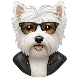 Perro westie con un hombre con pelo de punta y gafas emoji
