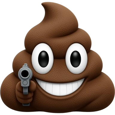 Pelúcia De Cocô Com a Arma Apontanso Pra você é Segurando Um Placa Escrita Pare De me Colocar no Lixo Com esse Papel de Bunda emoji | AI Emoji Generator