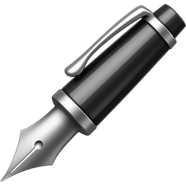 Create a vibrant emoji featuring a classic ink pen (fountain pen) as the main symbol of prose writing. The design should highlight the elegant curves of the pen, with ink flowing from the nib onto a blank page or scroll. Use deep ink blue, black, and subtle metallic accents to convey sophistication and creativity. The emoji should be simple yet striking, representing the art of storytelling. Make the background transparent. emoji