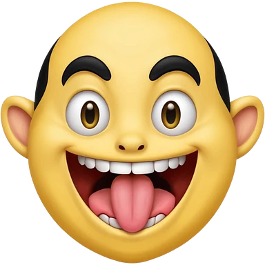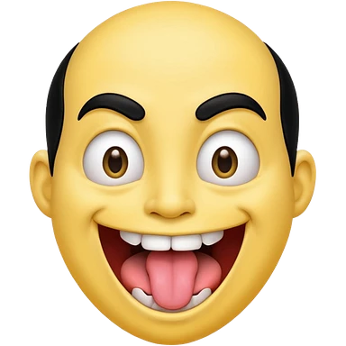 yellow face emoji smiling with huge tongue out and eyes wide open. Tongue should have the effect of wagging back and forth. Give him a head of black hair emoji