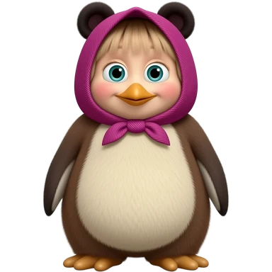 Create a penguin character inspired by Masha and the Bear in a flocked toys style with a transparent background. emoji