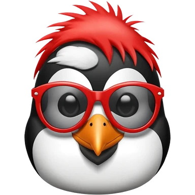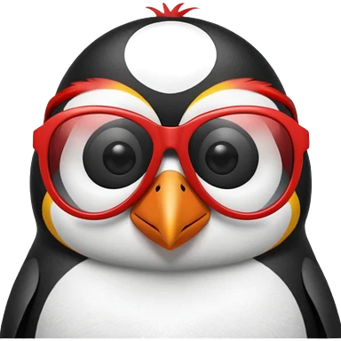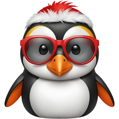 Penguin • High-Realism 3D Rendering • Sunglasses with Red Frames • Small Tuft/Lock of Hair on the Head emoji | AI Emoji Generator