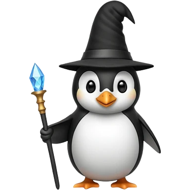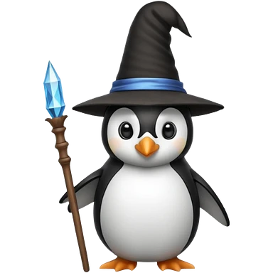 A wizard-explorer penguin wearing a slightly worn enchanted yellow hat and a flowing cape, standing in front of an ancient ruin. The penguin holds a spellbook in one hand and a magical artifact in the other, ready to unlock the secrets of a lost civilization emoji