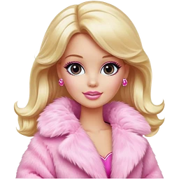 Women with reddish blonde hair with light green eyes and a pink fluffy coat pointing a laser gun emoji