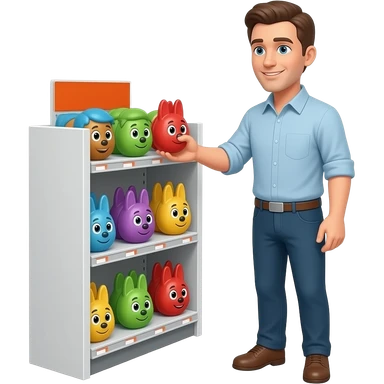 Man about to buy toy face at store emoji