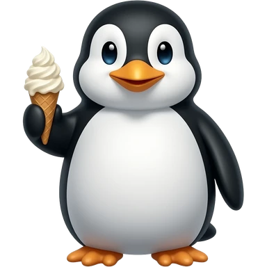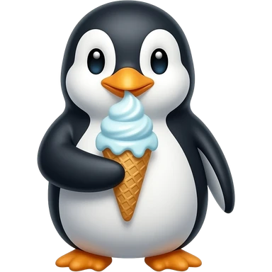 penguin wearing a navy sweater, black jeans, holding an ice cream with sunglasses in its head emoji