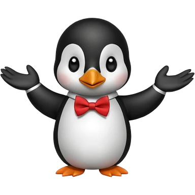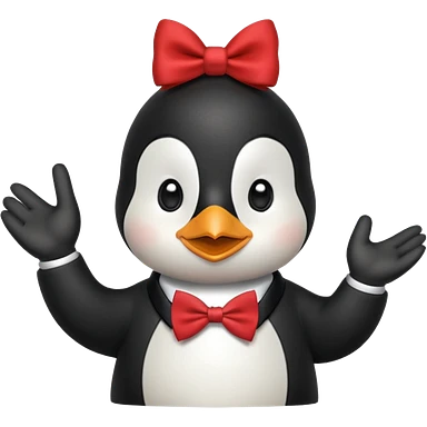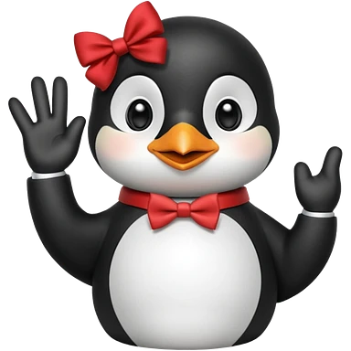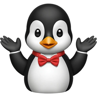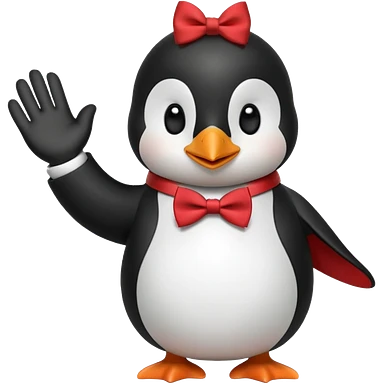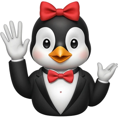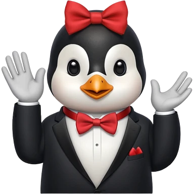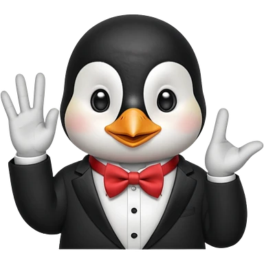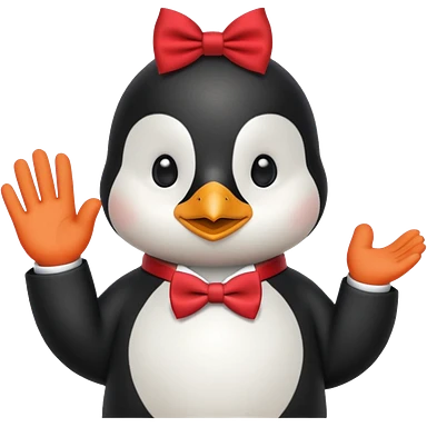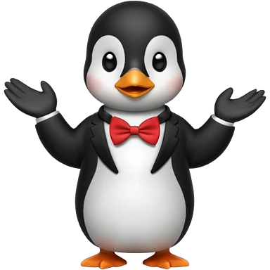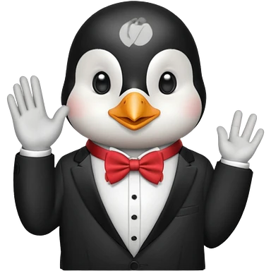Un pinguino con una pajarita roja haciendo el gesto con la mano abierta de cumplir una promesa emoji