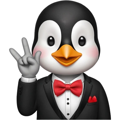 Un pinguino con una pajarita roja haciendo el gesto con la mano de cumplir una promesa emoji