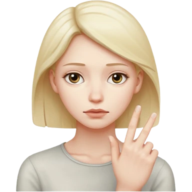 looking directly at the camera. They are touching their lower lip with their index finger in a contemplative or pensive gesture. The overall tone of the image feels casual and intimate, with a slightly blurred focus that gives it a soft, candid appearance. emoji