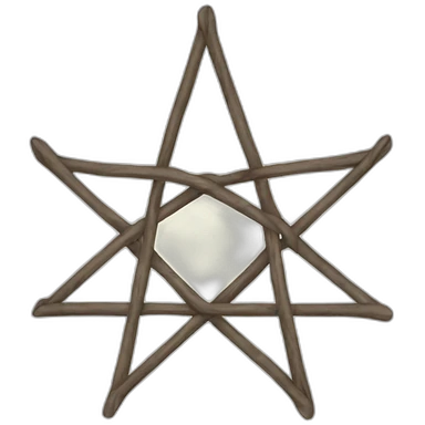 Pentagram made from wooden sticks with a few leaves emoji