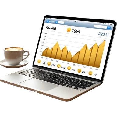 golden increasing charts in online shop admin dashboard on mac book screen emoji