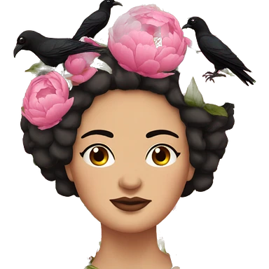 Peonies around head of a white Spanish raven brunette long hair chubby woman emoji