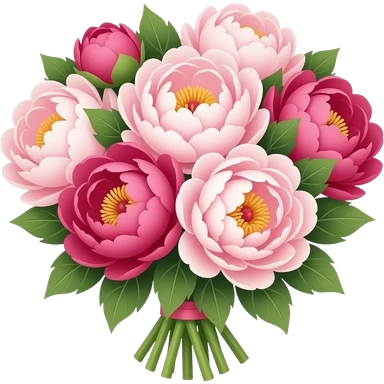 peonies in Persian red color tied with silk aesthetic ribbon of powder raspberry color in glamour vintage theme emoji