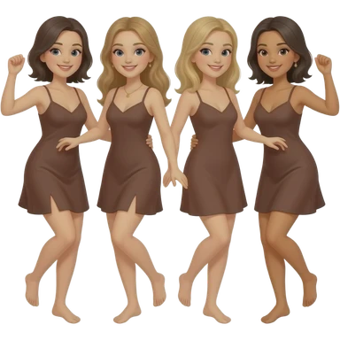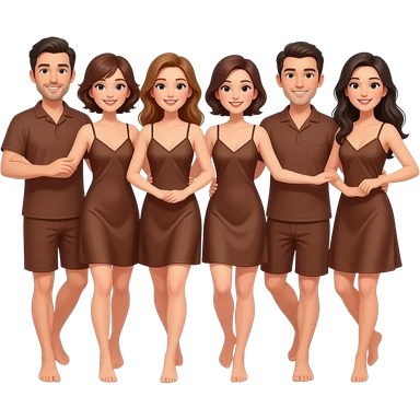 people dancing, total 6 people, 3 guys 3 girls, they are wearing marron color nighty. emoji