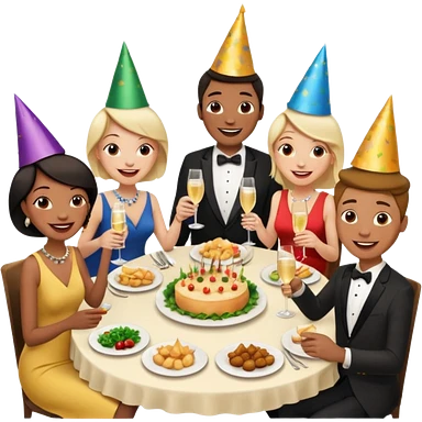 people at a dinner table with a girl sitting on a sofa talking in a cozy home emoji