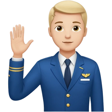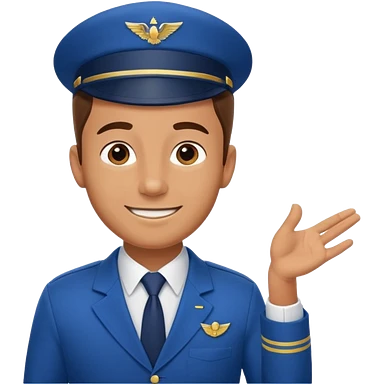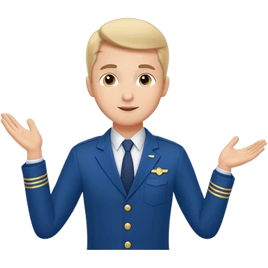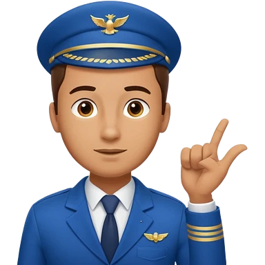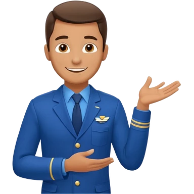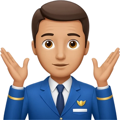 A calm male flight attendant demonstrating instructions with confident emoji