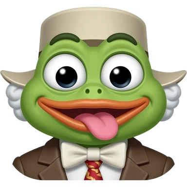 Pepe the frog sniffing a wad of money in his hand and smiling emoji