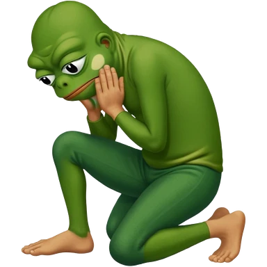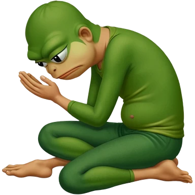 Pepe the frog kneeling and praying in front of man’s feet emoji