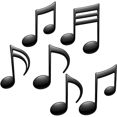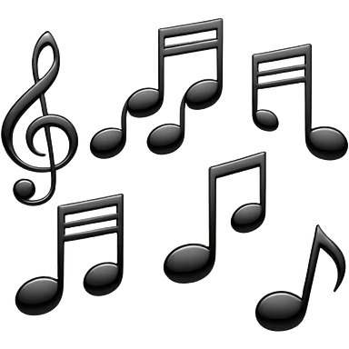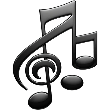single musical note emoji, deep matte black metal material, smooth rounded geometry emoji