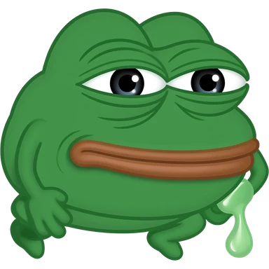 Pepe the frog sniffing a wad of money in his hand and smiling emoji