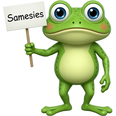 Pepe the frog holding up a sign that says "Samesies"" emoji