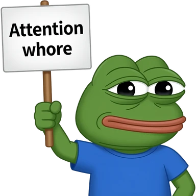 Pepe the frog holding up a sign that says "Attention whore" emoji