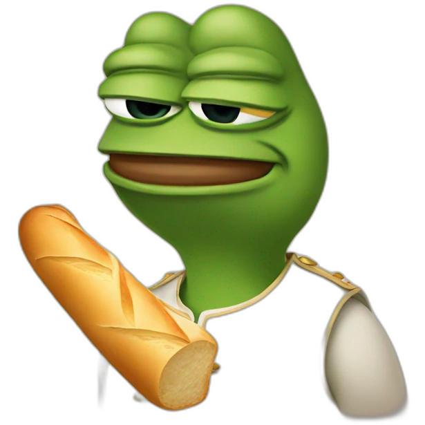 Macron avec une baguette et un drapeau français derrière lui emoji