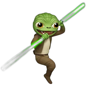 Pepe jumping with large lightsaber emoji