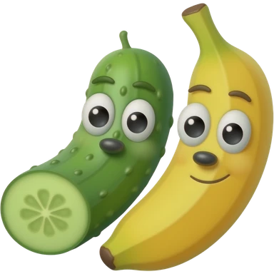 Un plátano con ojos y nariz y un pepino én la emoji