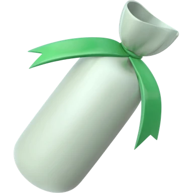 hot chocolate with marshmallows and little peppermint on the side with a light pink ribbon tied around hot chocolate cup emoji